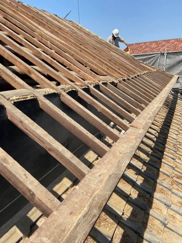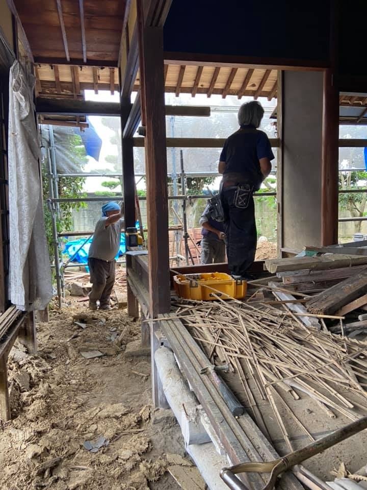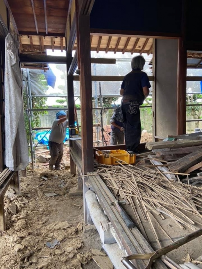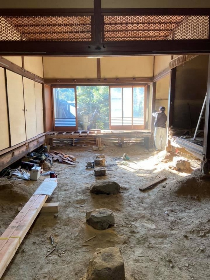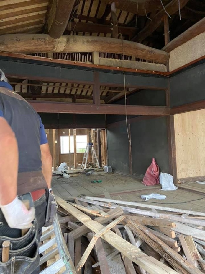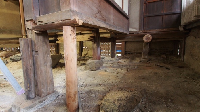 津田町の古民家改修工事が始まり、床を落として必要箇所を手直ししていきます。
