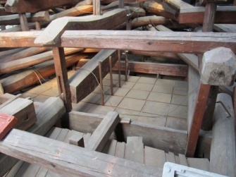 足場を組んで工事用素屋根をかけて、瓦撤去を行います。
