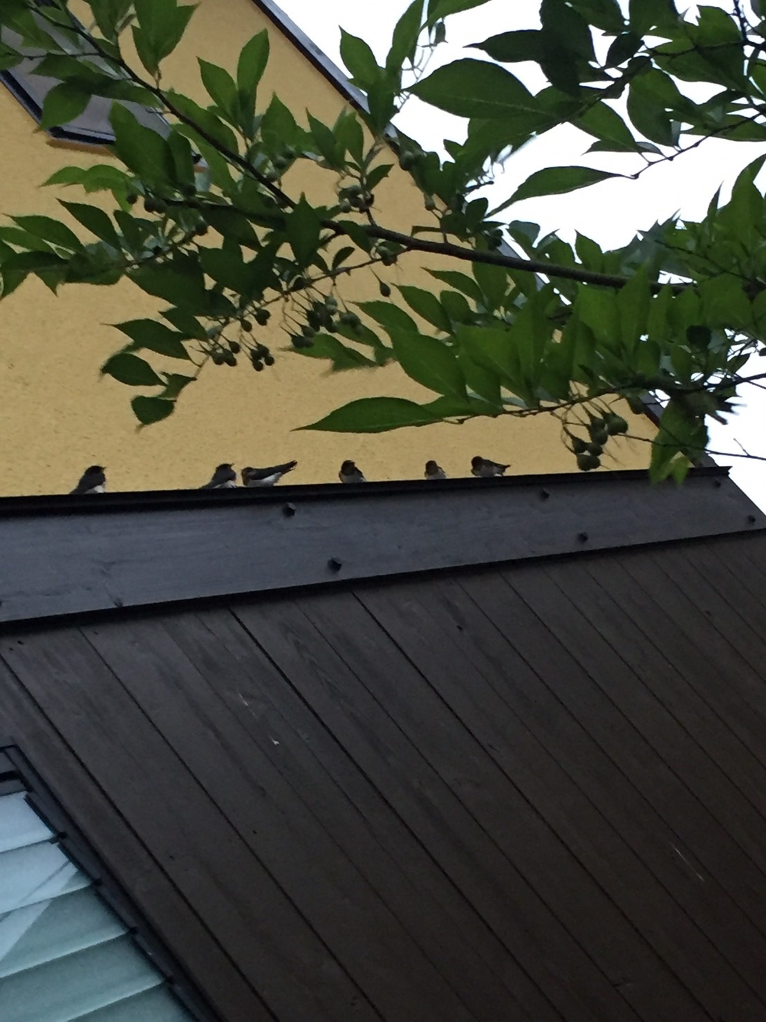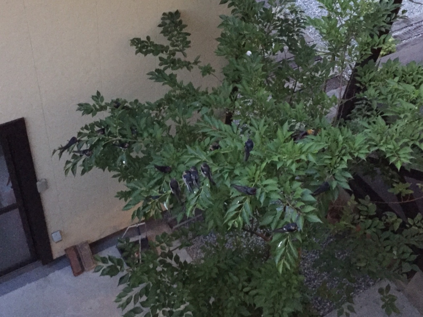 夏の来客。 2017年06月23日 梅雨ですね。 春に完了した築17年目の外壁改修。 色合いにメリハリもつき、我が家を探しやすくなったのか??? 毎夜毎夜訪れるこの子達。 巣はどこか別のところにあるらしく、育ったヒナの飛行練習にもみえる。 風で揺れる枝にしがみつき一夜を過ごしてる様子もみえる。 おかげで夜はこの通路を通らぬ配慮で彼らを見守る羽目に。。。。 しかし、気付けば改修仕立ての壁板に点点と白いマーキング^^; 彼らが去った頃、長雨になればこの逆ダルメシアン模様も洗い流されるかな~ と梅雨に期待している我が家です。