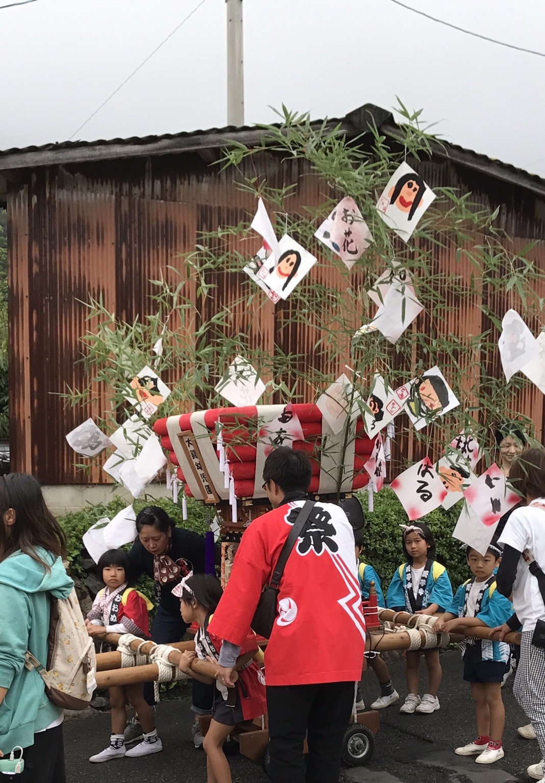 週末には祭り本番、合わせて園児たちの太鼓も村中を練り歩きます。